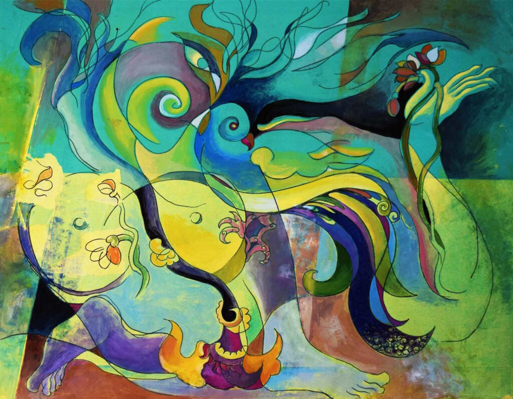 Singing Love Secrets 2016 54×42 ink and colour wash on Mill-Waste Sheet
