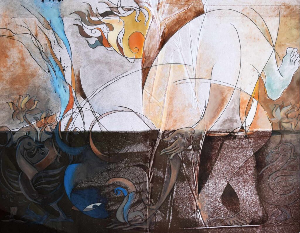 Unfolding the Emotions 2016 54x42cm Ink and Colour wash on Mill-Waste Sheet